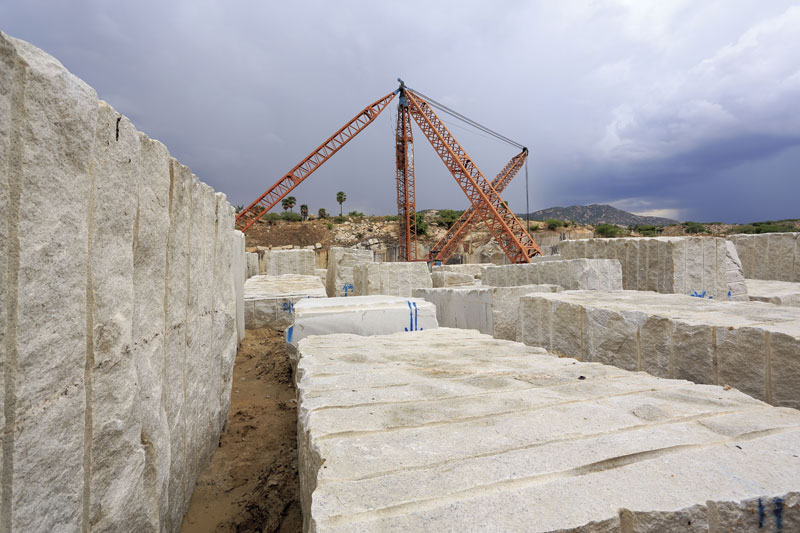 Imperial White Granite Quarry near Salem, Tamilnadu is owned by us and it is the only quarry which has huge deposit of Imperial White Granite. We can produce 2500 CBM per month and it can last for another 50 years.