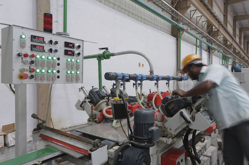 Our Tiles plant is equipped with –• Pedrini 56 disc machine for Tile block cutting/processing.